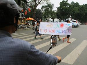 Một số hình ảnh các em học sinh xuống đường cổ động an toàn giao thông: